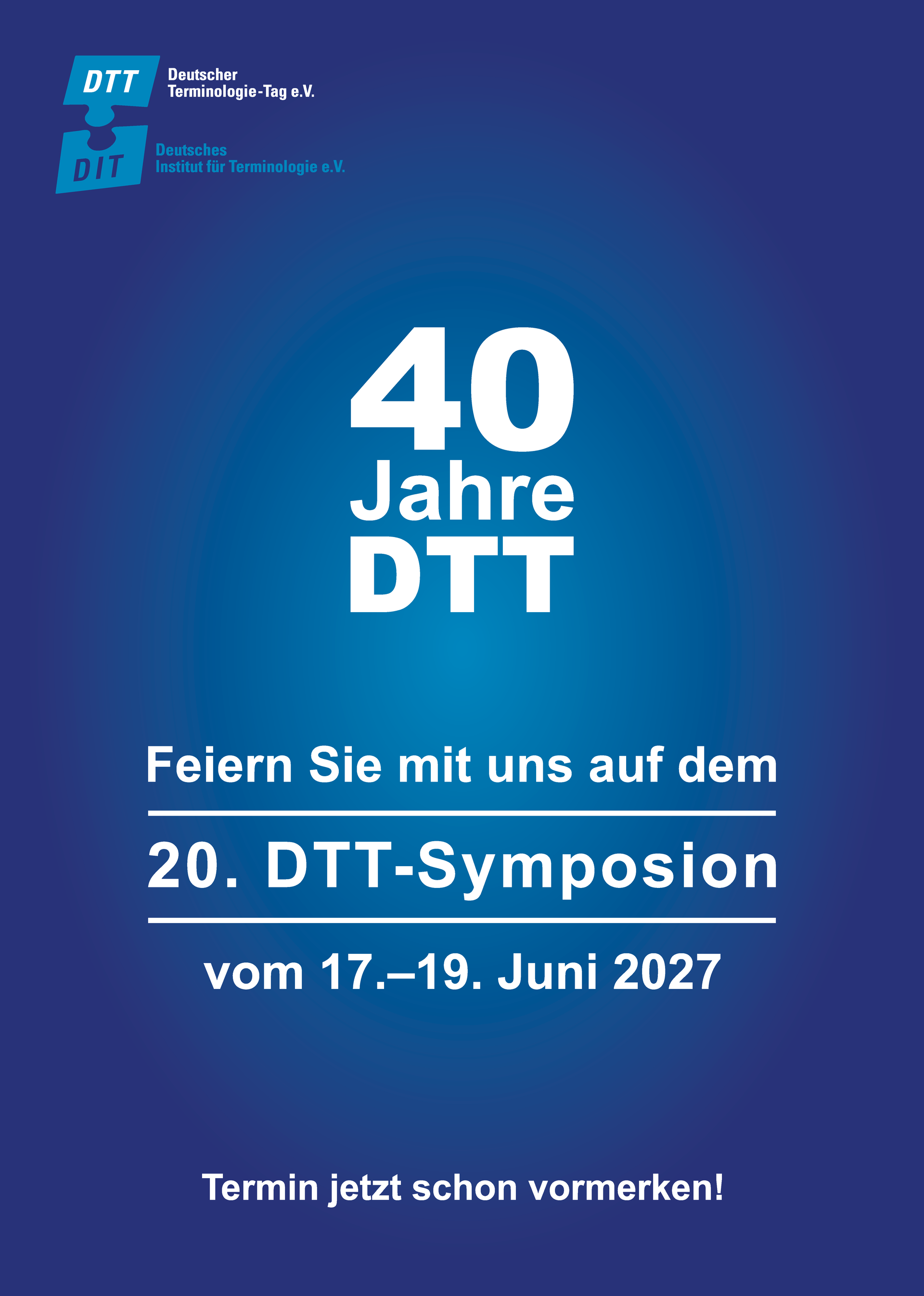 Der DTT wurde 1987 gegründet und besteht 2027 somit schon seit 40 Jahren. Gleichzeitig werden wir 2027 bereits das 20. DTT-Symposion halten. Blocken Sie sich deshalb diesen Termin im Kalender und feiern Sie mit uns!